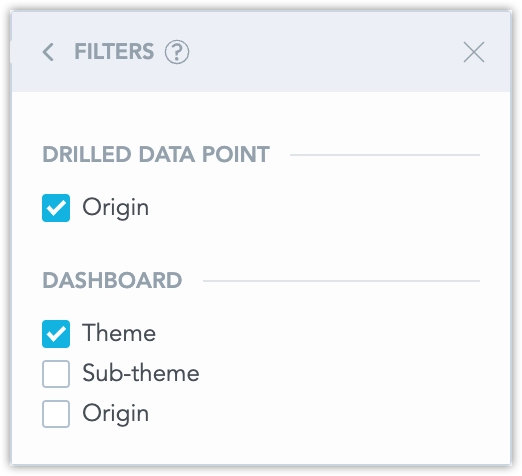 - If you add a new visualization or metric filter and save the visualization, the new filter appears in the drill filter list and is unchecked by default.