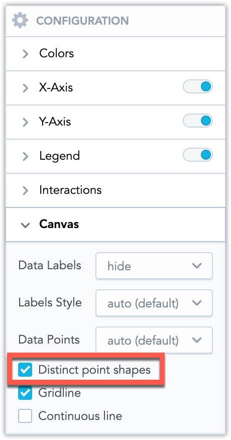 Distinct point shapes make data points easier to tell apart. When enabled, charts use different shapes instead of the same symbol for all data points.