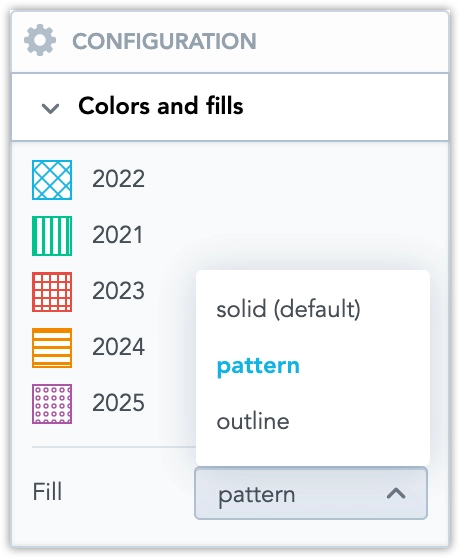 In Configuration > Colors and Fills > Fill, you can choose how chart segments are displayed: