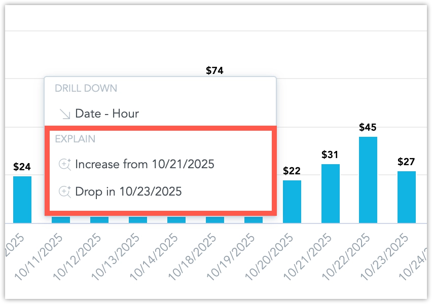 You can run it directly from a dashboard, launch it from a visualization created by the AI Assistant, or start it through the AI Assistant using a natural-language question such as “Why did my total sales drop last month?”