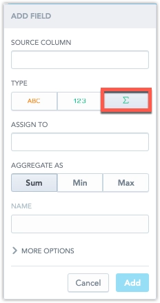 - Adding aggregated facts: When you click Add Field in a dataset, you can now define not only facts and attributes but also aggregated facts.