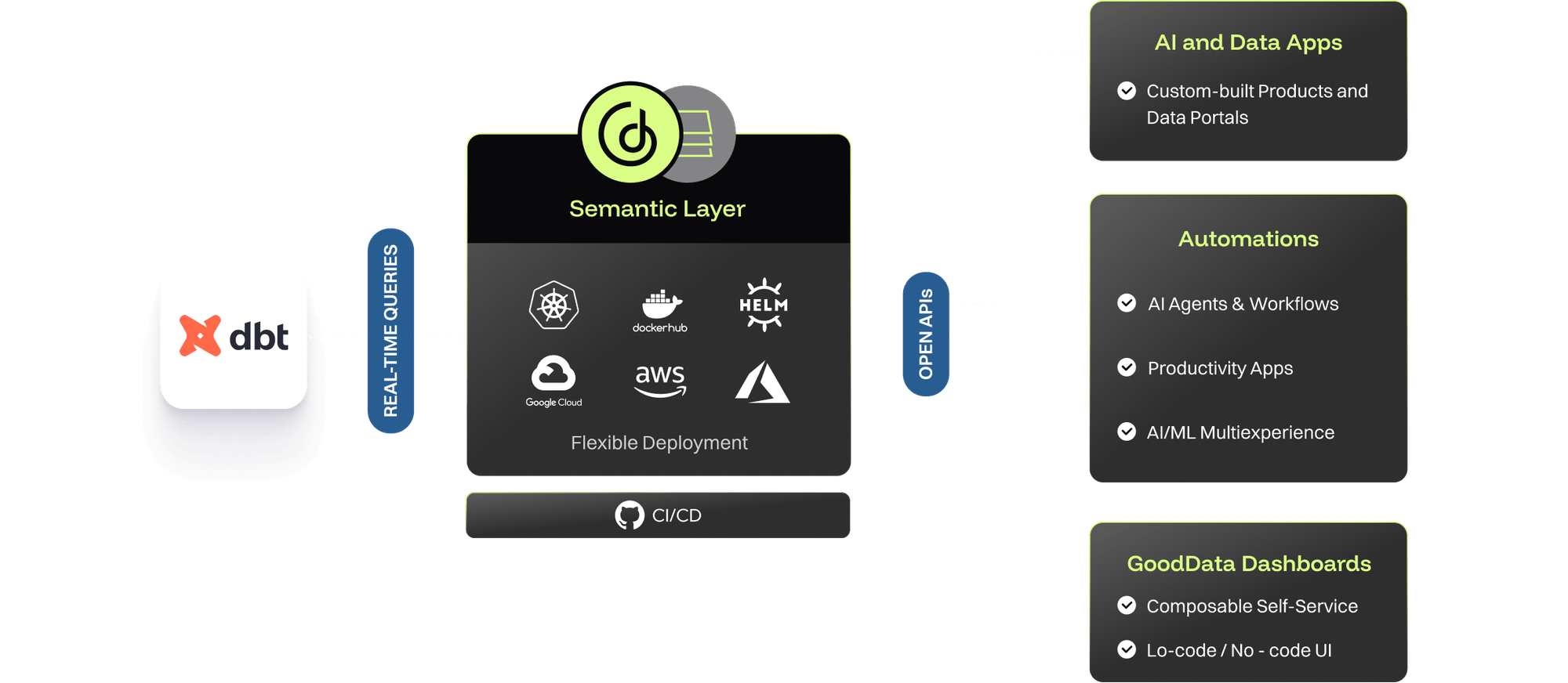 Keep the dbt and GoodData semantic layers in-sync automatically to effortlessly ensure consistent metrics definitions across all user experiences.